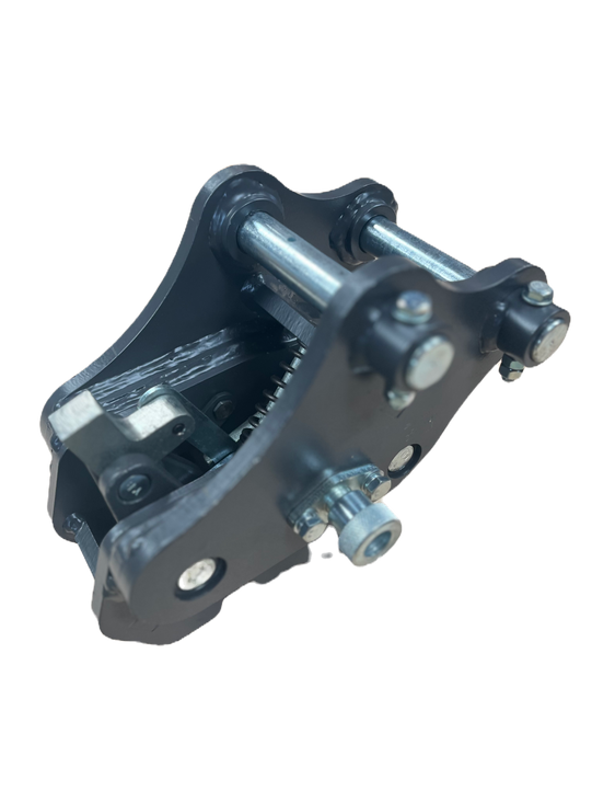 This allows you to change buckets or accessories even more easily by lowering a latch with a key, which opens the mechanism to release the first bucket. Then you position the second bucket and the mechanism engages automatically.